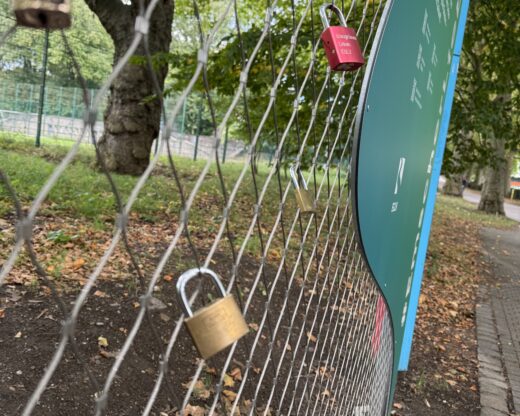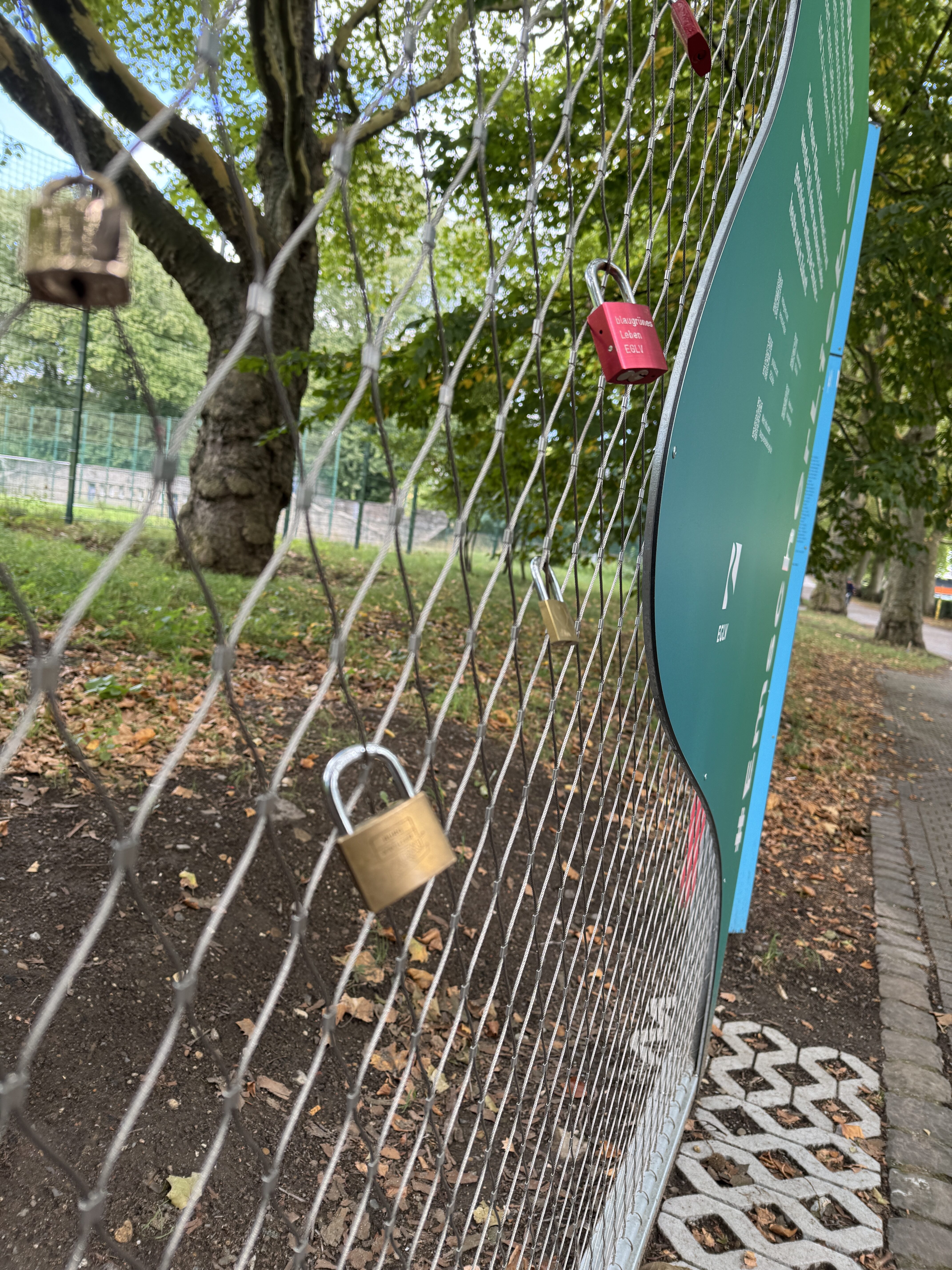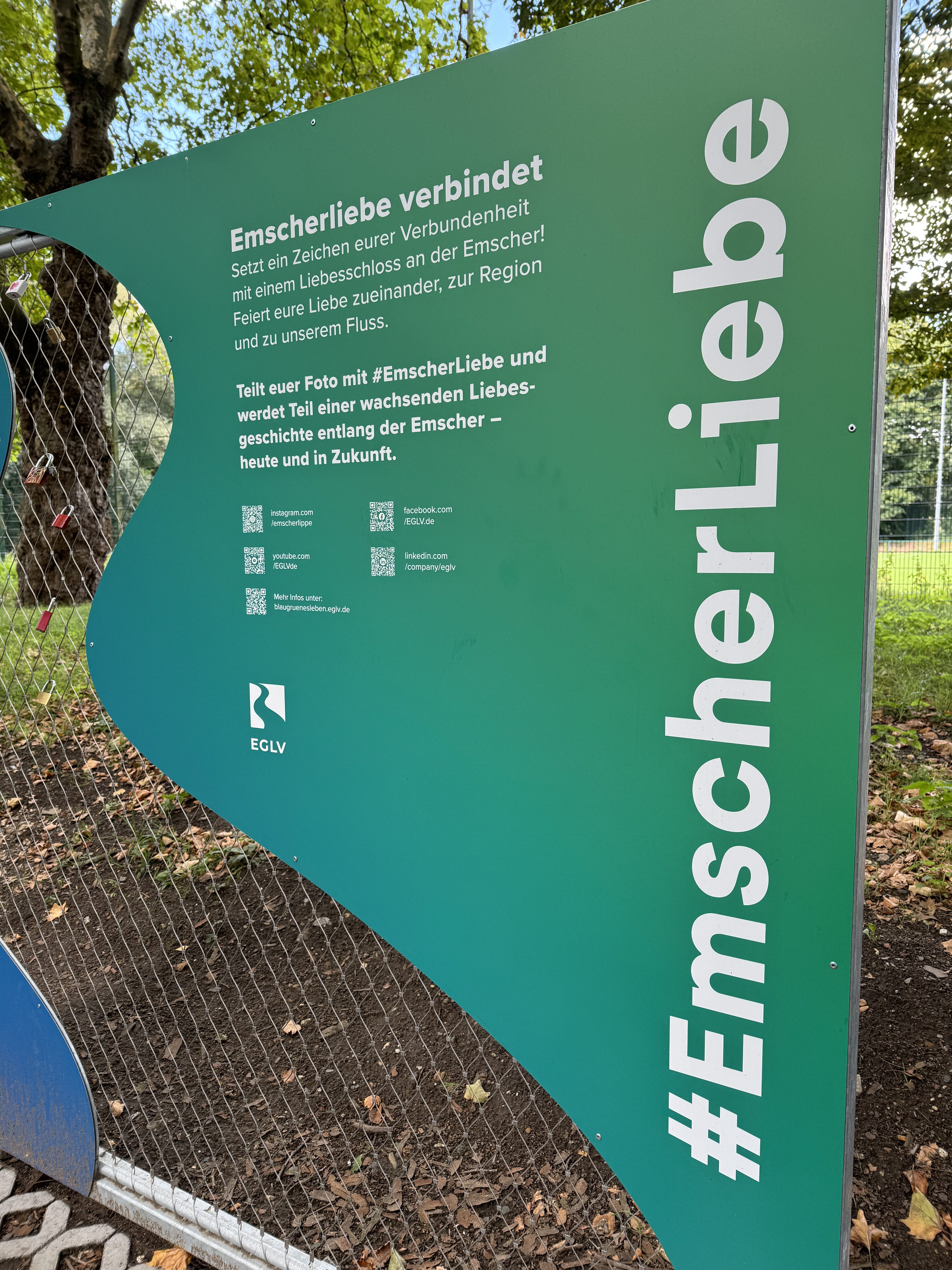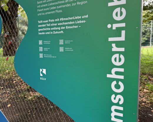 Emscher-Liebe an der Slinky Springs to Fame: Nur wenige Schritte entfernt von der LUDWIGGALERIE befindet sich die von Tobias Rehberger entworfene Brücke „Slinky Springs to Fame“. Während Liebesschlösser dort verboten sind, hat die Emschergenossenschaft auf der Emscher-Insel eine eigene Anlage installiert: „Emscher-Liebe“. Paare können hier ihr Schloss aufhängen und den Schlüssel direkt in eine dafür vorgesehene Box werfen – eine romantische Erinnerung an den Oberhausen-Besuch. Fotos lassen sich unter dem Hashtag #EmscherLiebe teilen.